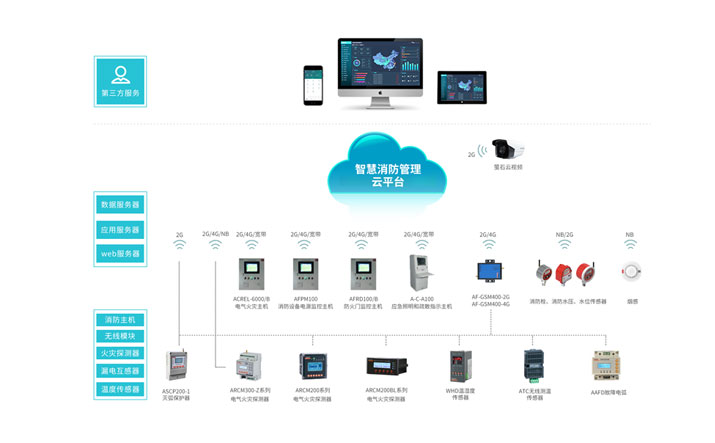 簡介:安科瑞智慧消防云平臺(AcrelCloud-6800)基于物聯網、大數據、云計算等現代信息技術,將分散的火災自動報警設備、電氣火災監控設備、智慧煙感探測器、智慧消防用水等設備連接形成網絡,并對這些設備的狀態進行智能化感知、識別、定位,實時動態采集消防信息,通過云平臺進行數據分析、挖掘和趨勢分析,幫助實現科學預警火災、網格化管理、落實多元責任監管等目標。填補了原先針對“九小場所”和?;飞a企業無法有效監控的空白,適應于所有公建和民建,實現了無人化值守智慧消防,實現智慧消防“自動化”、“智能化”、“系統化”、用電管理“精細化”的實際需求。